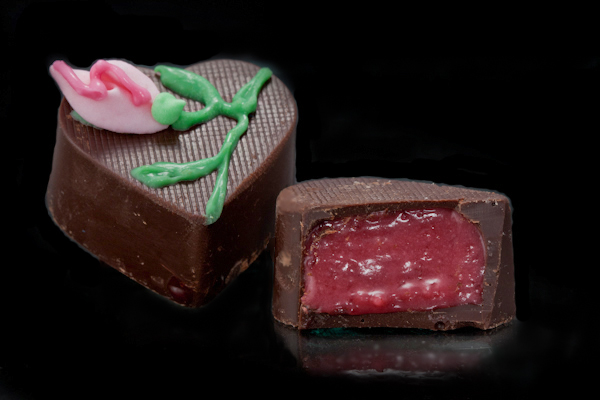 Dark Chocolate Raspberry Cream Heart w/Flower or Seasonal Décor