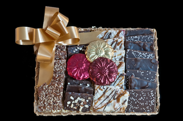 Assorted Barks and/or Fine Candy in Gold Mesh Tray